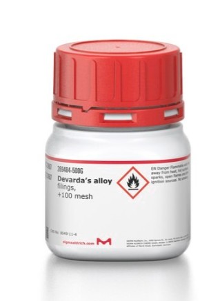 Devarda′s alloy is an alloy of aluminium (44% – 46%), copper (49% – 51%), and zinc (4% – 6%). It is used as a reducing agent for the analysis of nitrite and nitrates. Devarda′s alloy EMSURE® grade product) is optimized for regulated analyses and highly demanding lab applications. This reagent is ideal for demanding analytical procedures that need low detection limits and maximum sensitivity.