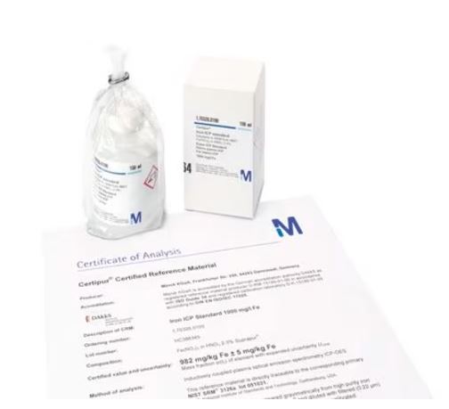 This certified reference material (CRM) is produced in accordance with ISO 17034 and characterized in accordance with ISO/IEC 17025. This CRM is traceable to SI unit kg and measured against primary material from a National Metrology Institute (NMI), e.g. NIST.
